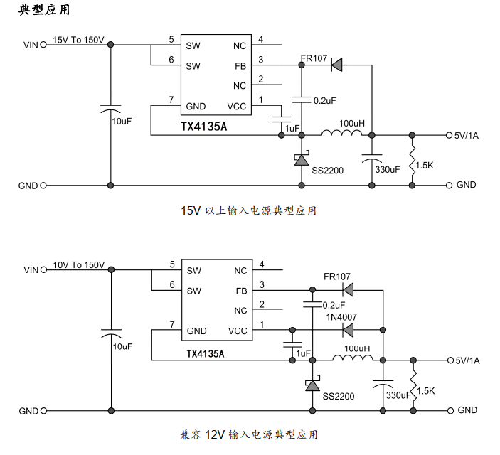 TX4135A 是一款降压转换器,无需光耦 即 可提供精确的恒压(CV)调节。集成 150VMOSFET,以简化结构并降低成 本。这 些特性使其成为离线低功率应用的 理想转换器,如家用电器和备用电源。