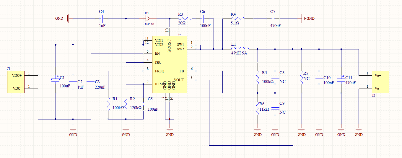 C3电容取消,输出短路保护动作为输入端恒功率输出