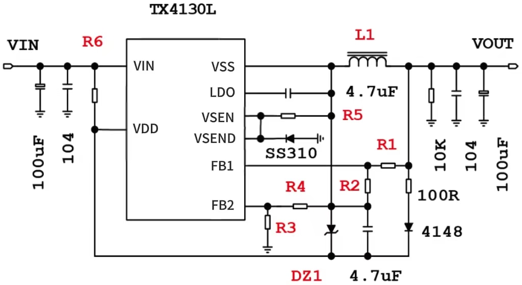 TX4130L 是一款宽电压输入的开关降压型 DC-DC 转换芯片