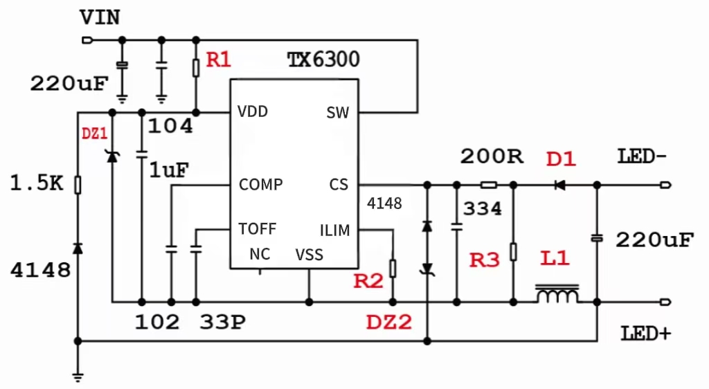 TX6300内置100V功率MOS的宽输入输出电压范围的高精度、高效率的升降压型LED恒流驱动控制芯片。